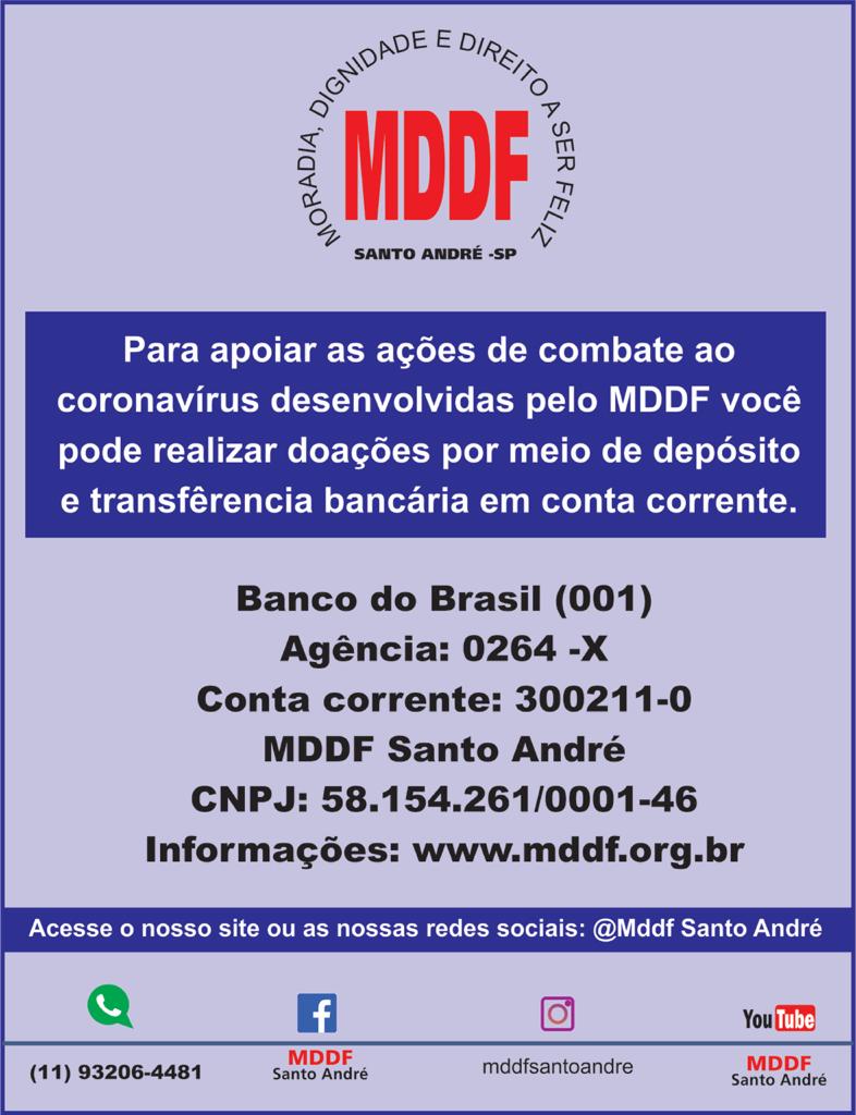 Moradores de comunidades e conjuntos habitacionais de Santo André começaram a ser beneficiados com uma ação social promovida pela Fundação Banco do Brasil e pelo MDDF (Movimento de Defesa dos Direitos de Moradores em Núcleos Habitacionais), instituição que atua no município há mais de 30 anos em defesa de direitos e interesses da população em situação de vulnerabilidade social.